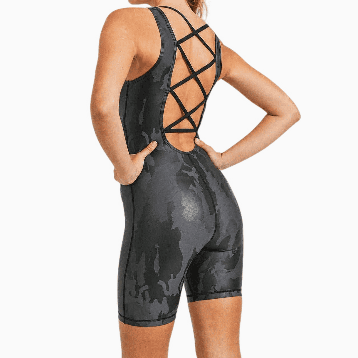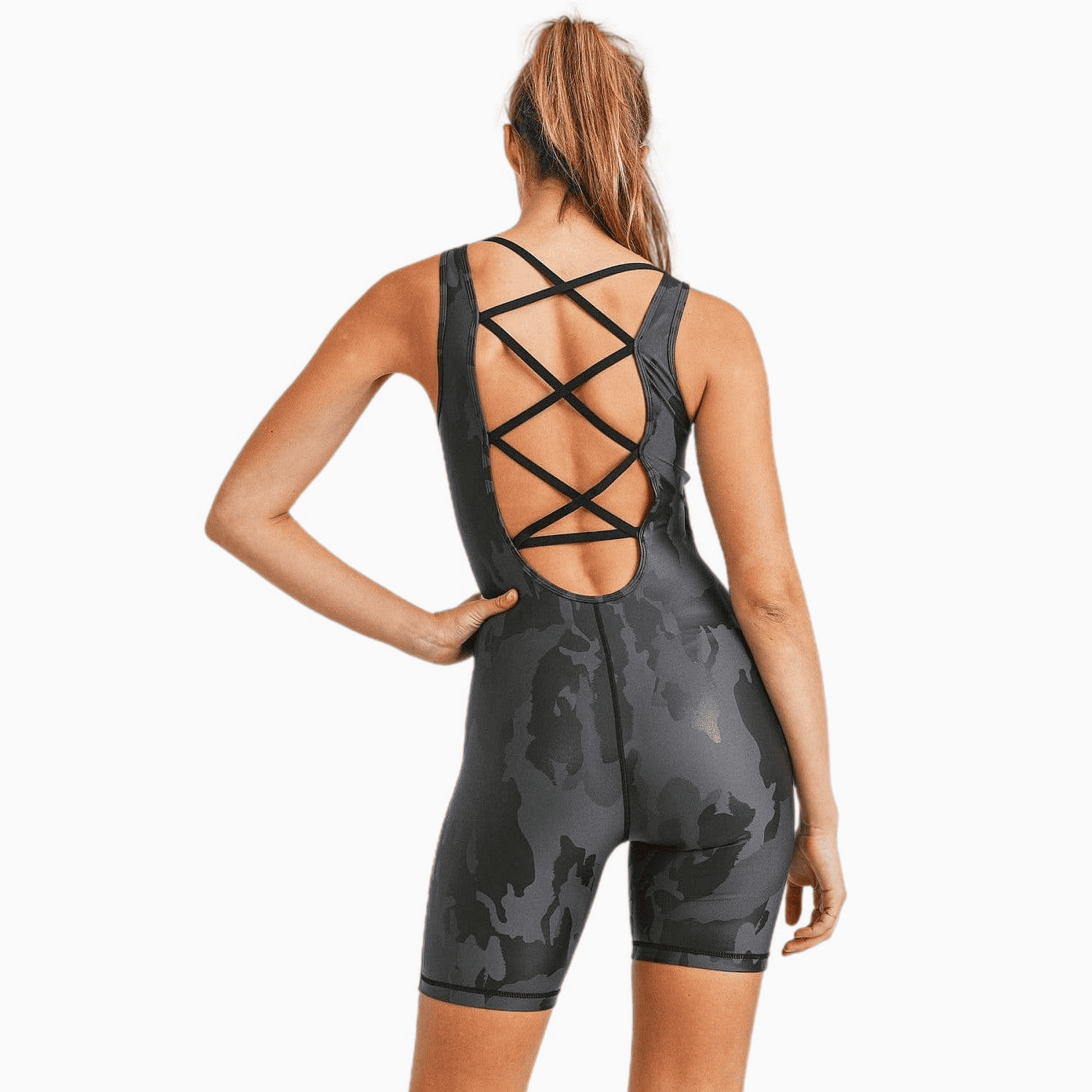 Have you ever wanted to feel like a ninja while doing yoga? Well, now you can with this stylish and comfortable Camo Jumpsuit. This sleeveless unitard is made of moisture-wicking material with a four-way stretch, so it's perfect for any activity. Plus, the crisscrossing straps on the back add a unique touch. So go ahead and hit the yoga studio or the streets in style with this jumpsuit.82% polyester, 18% spandex.